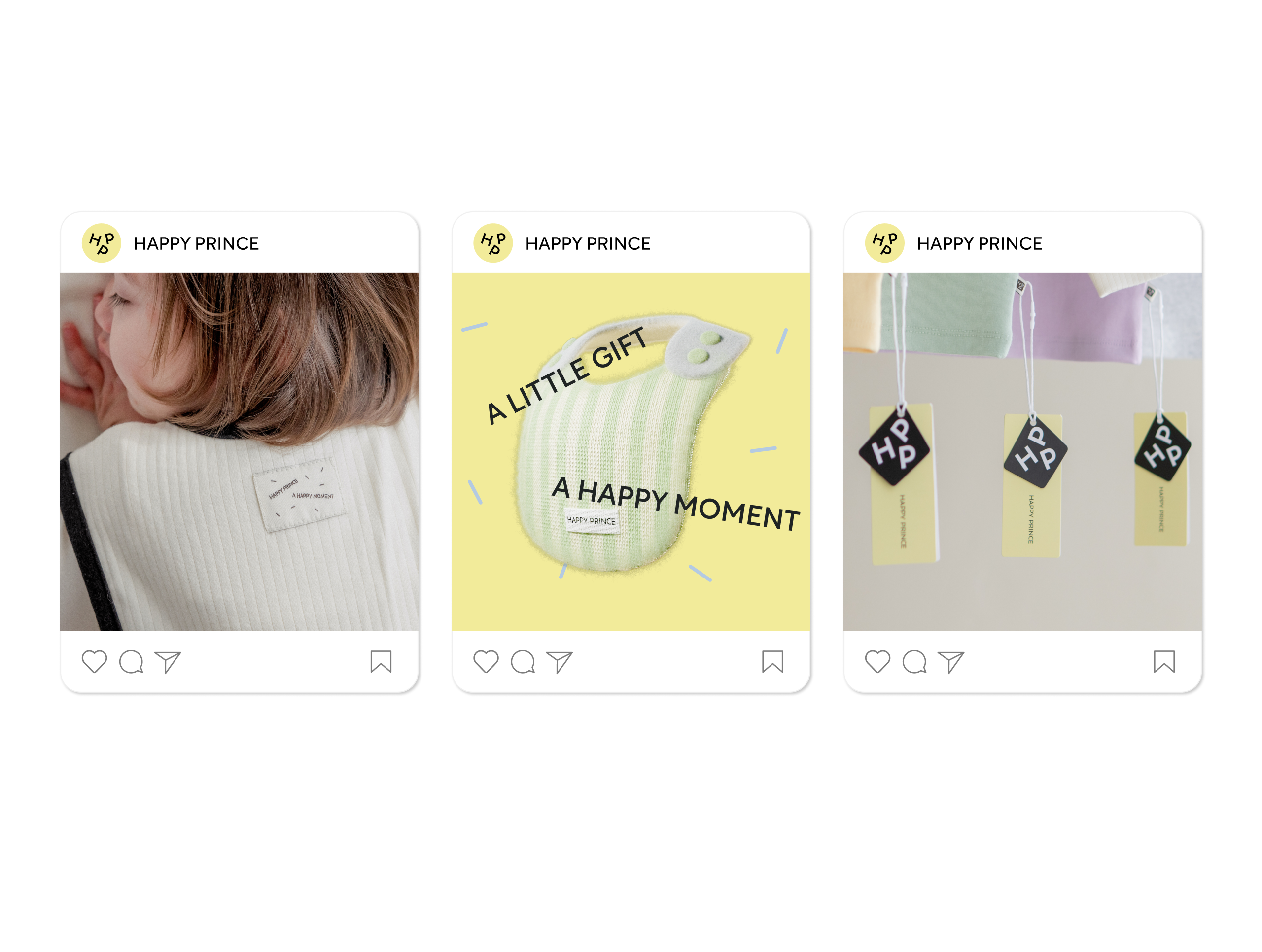 Happy Prince is a baby fashion brand that delivers happiness to families through designs capturing a child’s pure loveliness. We hope every day becomes a special gift, where each precious moment is filled with anticipation and joy. The logo, inspired by the unfolding of a gift box, expresses the brand’s value of making everyday life more special and full of meaning.