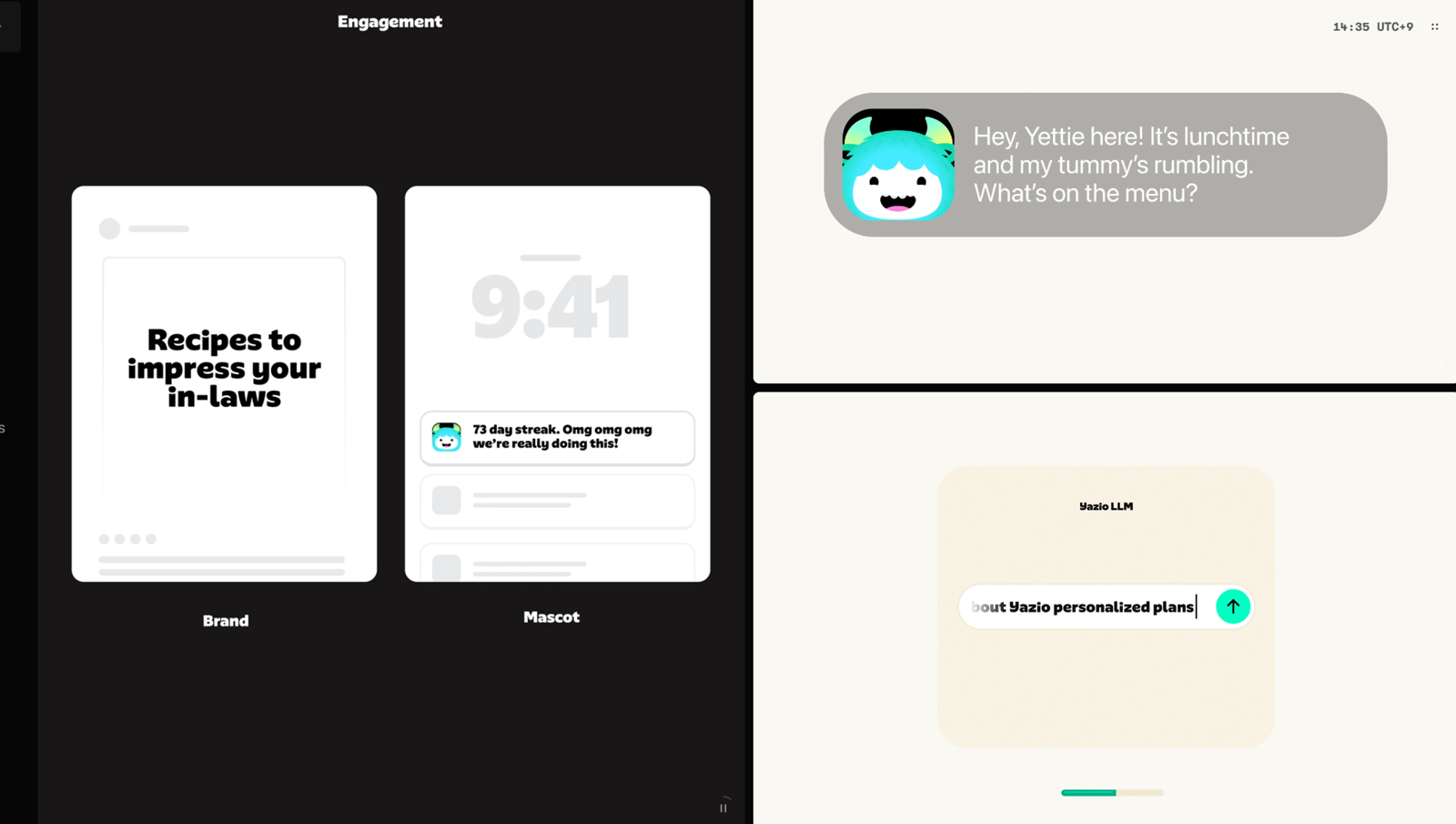 Yettie는 사용자와 정서적으로 교감하는 페르소나로서, 앱 내 적절한 타이밍에 등장해 동기를 부여하고 긍정적인 에너지를 발산하며 브랜드 인지도와 호감도를 동시에 끌어올립니다.
