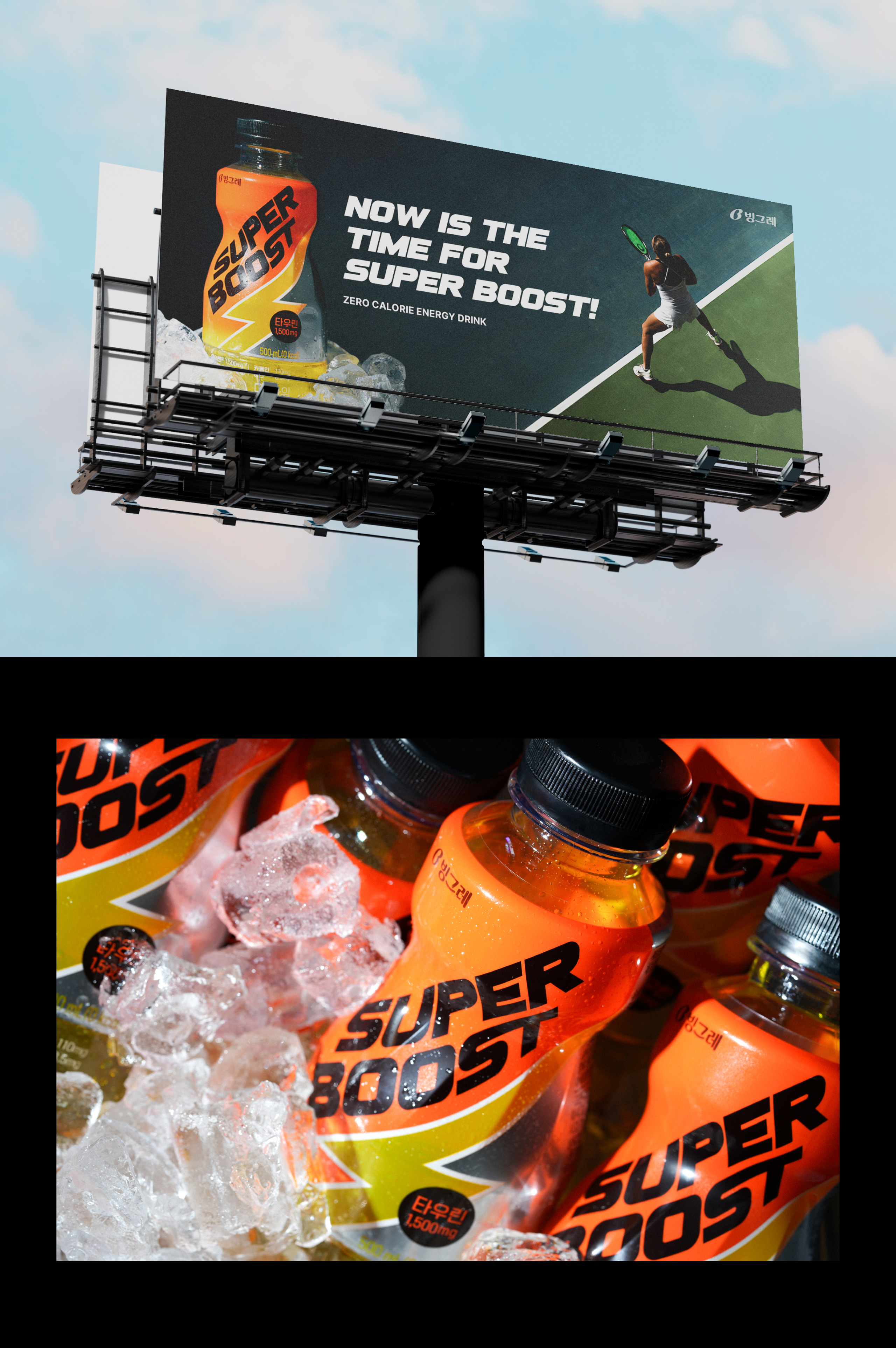 빙그레의 제로칼로리 에너지드링크 슈퍼부스트의 리뉴얼 프로젝트를 진행했습니다.
