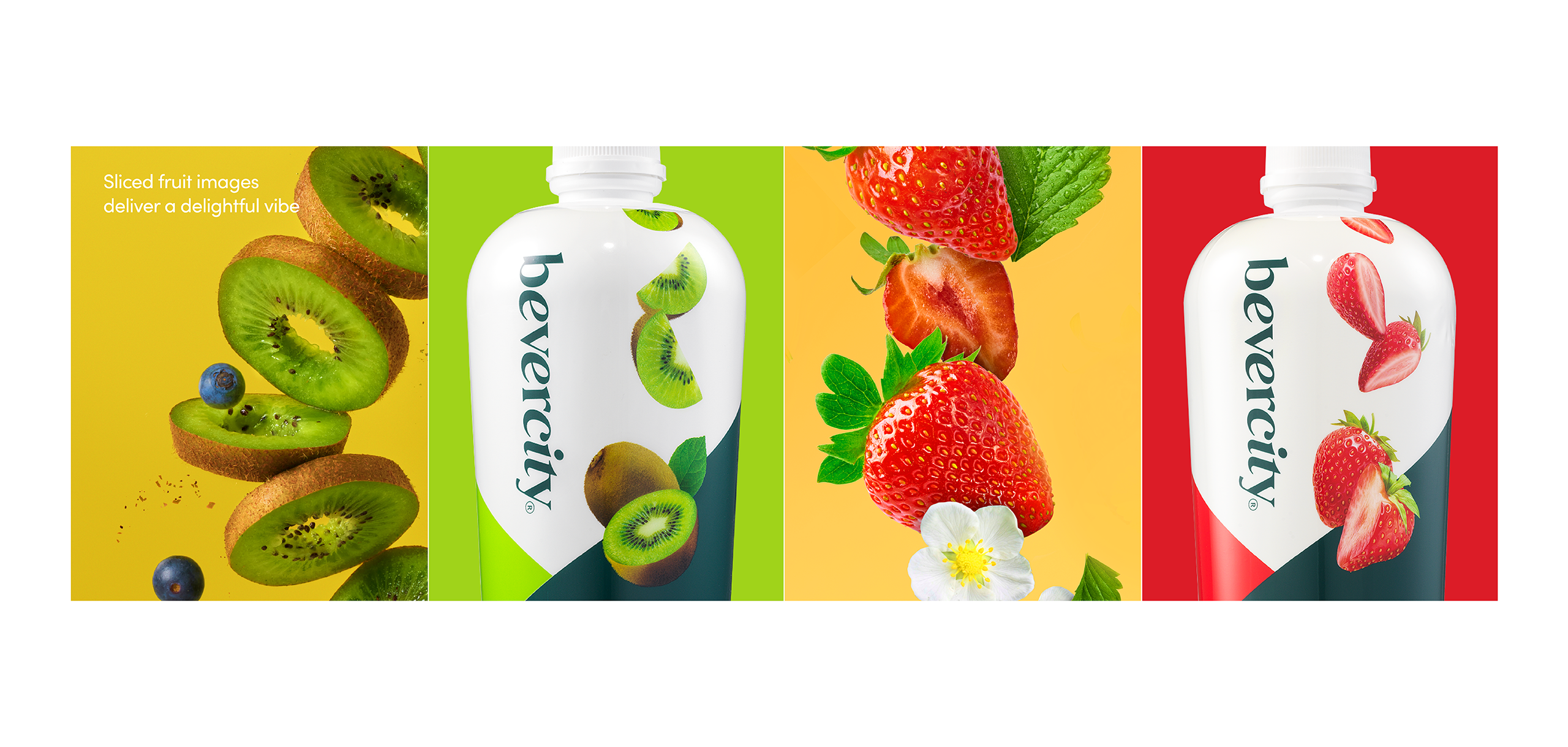 Beversity is a brand that offers a variety of delicious beverages to bring joy and relaxation to life in a bustling urban environment. The logo features italicized text combined with angled planes crossing diagonal lines, symbolizing diversity. The deep green brand color is used to maintain a sense of unity across the brand's diverse product offerings.