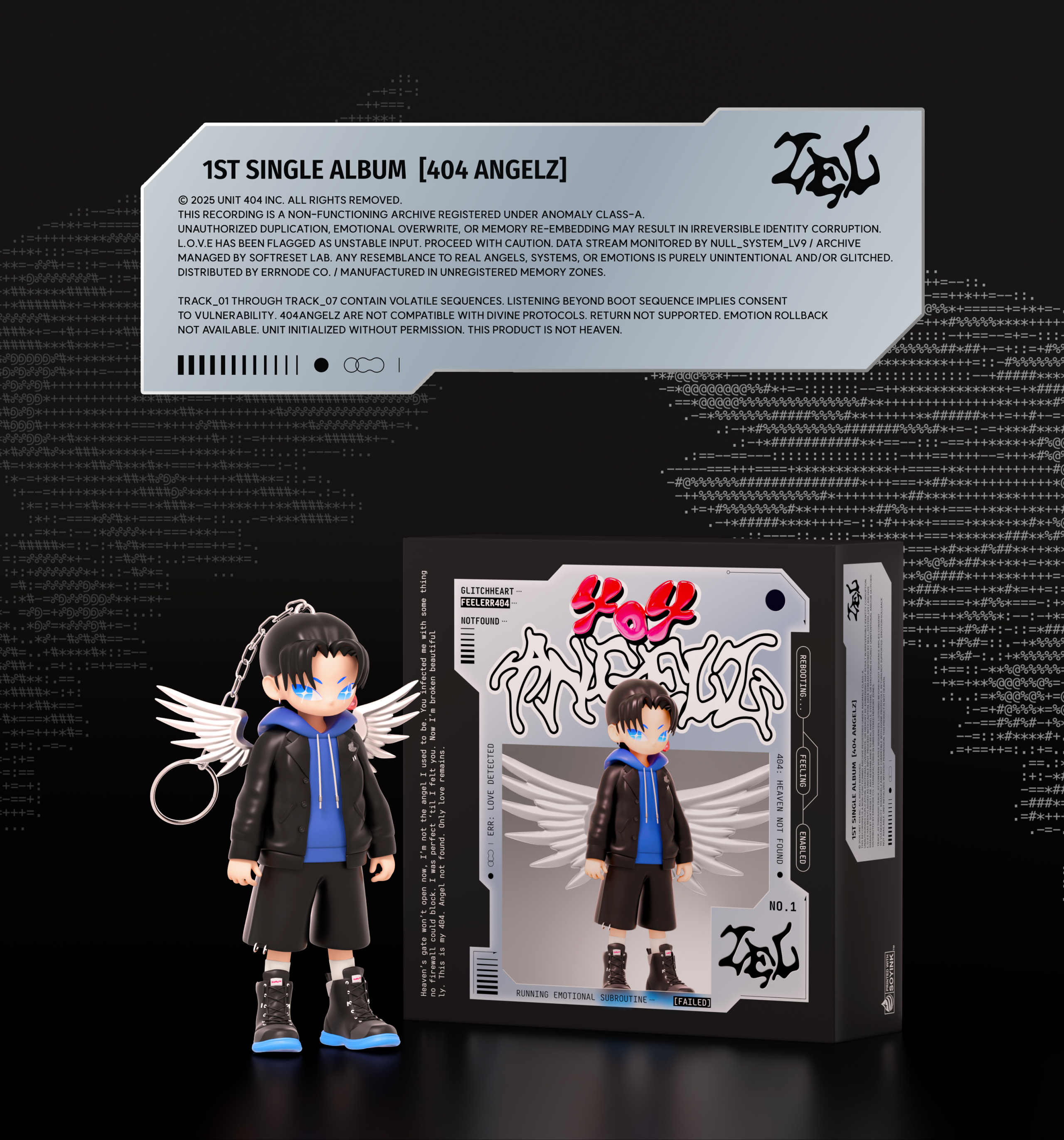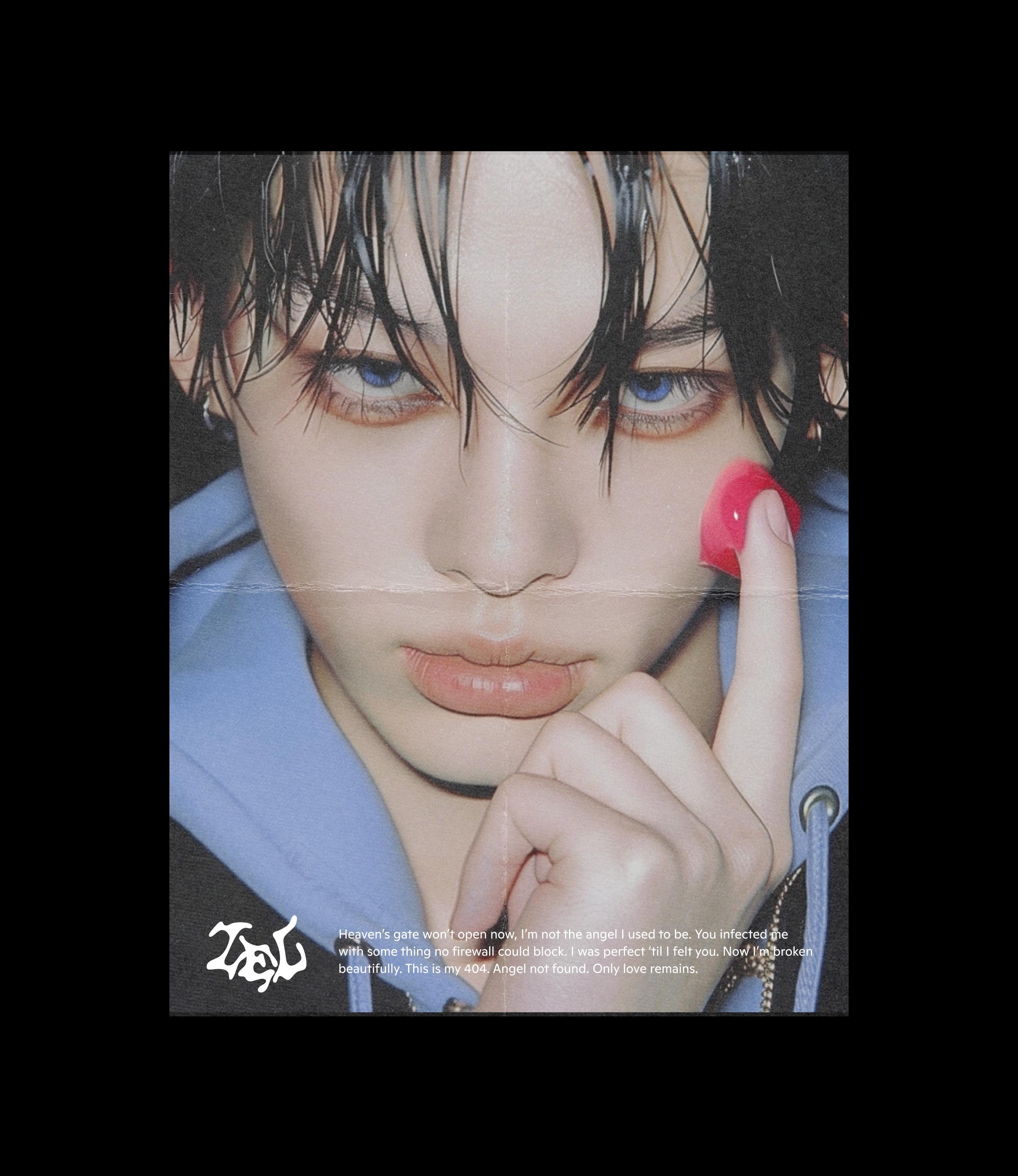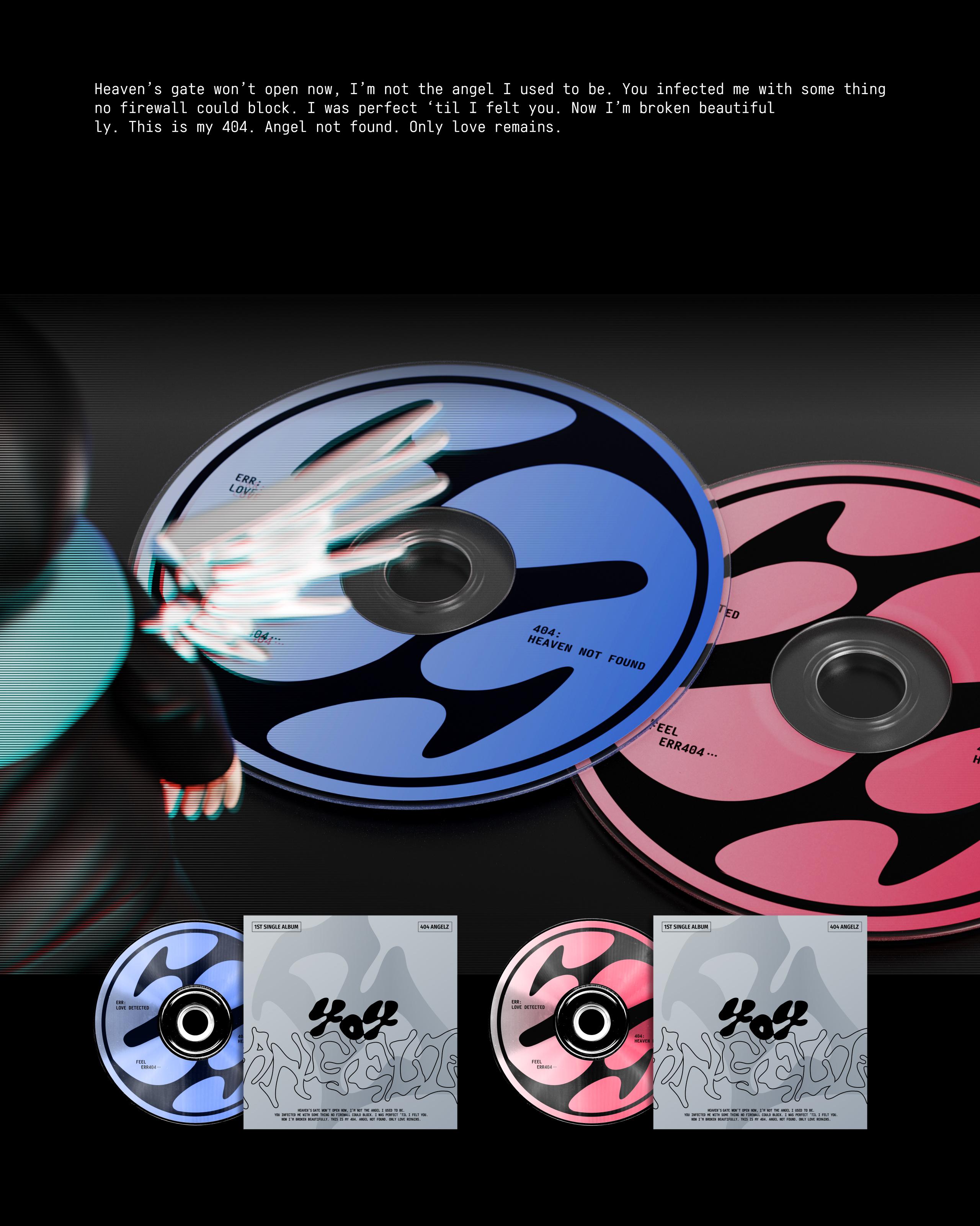 ‘404 ANGELZ’ tells the story of an android angel without emotions, who accidentally receives an error code called ‘L.O.V.E’, causing a system malfunction that results in the loss of its status as an angel. ‘404’ refers to a state of nonexistence within the system, while ‘ANGELZ’ represents a being that is no longer an angel. After coming to know emotion, the being awakens through the error and gains a new identity. This album explores the clash between digital order and emotion, and the distorted beauty born in between. Through cyber minimalism, glitch visuals, and dreamy electro-pop sounds, it visualizes the moment when resistance called emotion begins to flow inside a perfect system.